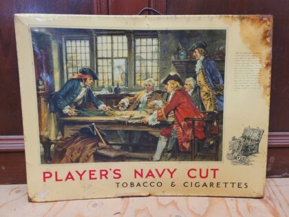 An original celluloid advertising sign decorated with 'The Captain Presents His Accounts' after the painting by A. D. McCormick, R. I.