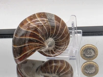 Polished Nautilus Fossil from the Cretaceous period. Individually hand worked to highlight natural detail. Sourced directly from Madagascar. 8 x 5 x 6.5cm