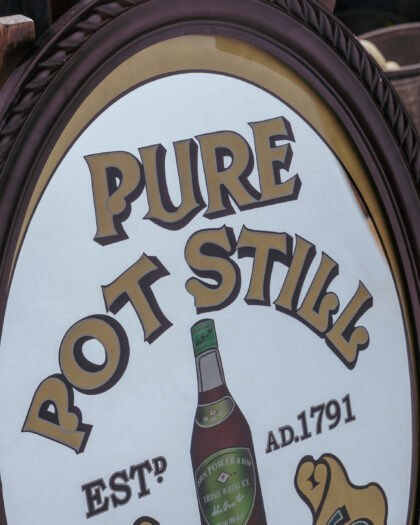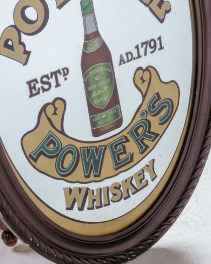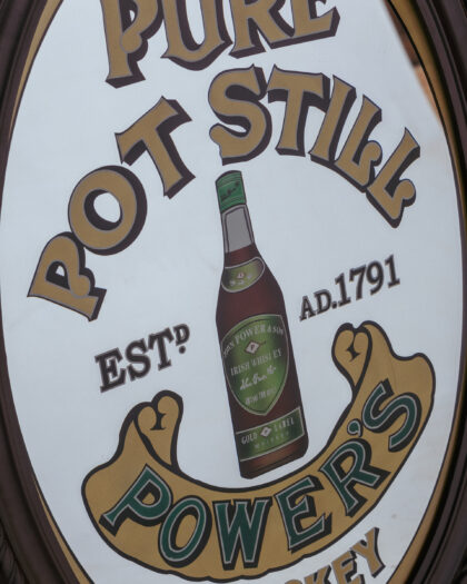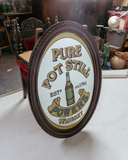 A framed advertising mirror for Power's Irish Pure Pot Still Whiskey.