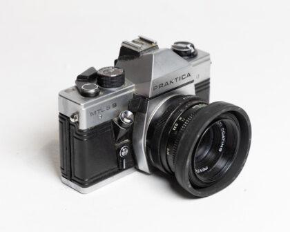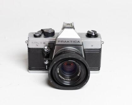 A vintage Praktica MTL5B film camera with a Pentacon lens, perfect for collectors and photography enthusiasts.