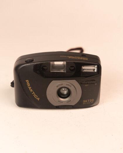 This Praktica SK720 is a classic 35mm film camera featuring a motor drive and a lens with Big View AF. It is a great addition to any camera collection or as a decorative prop. The camera shows some signs of wear typical of vintage items. This item has not been tested, we cannot verify if it is working or not and is sold as a prop only.