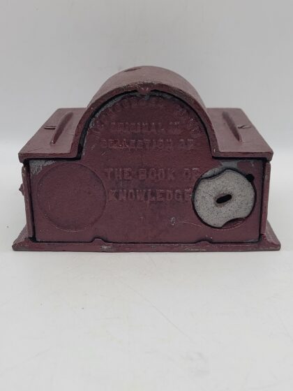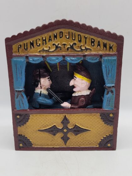 A painted, moving cast iron money box.