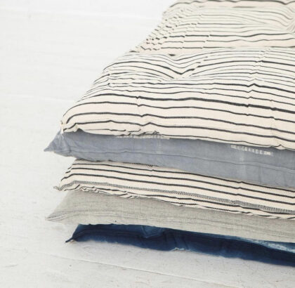 We have a range of the beautifully simple textiles from TENSIRA in stock. Their fabrics are made in a small town in Guinea where they have a centuries old indigo dyeing tradition. All of their products are completely hand-made in Africa - hand-spun, hand-woven, and hand-dyed cotton.