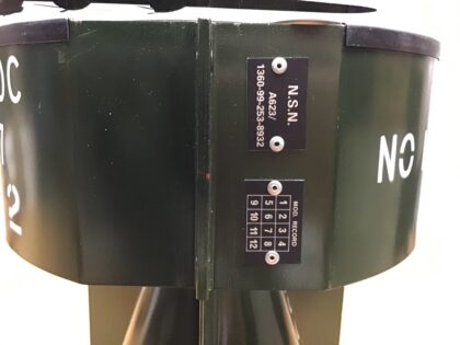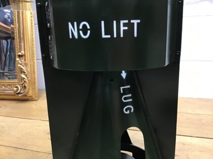 Glass-topped side table constructed from the tail fin of an RAF missile/bomb.