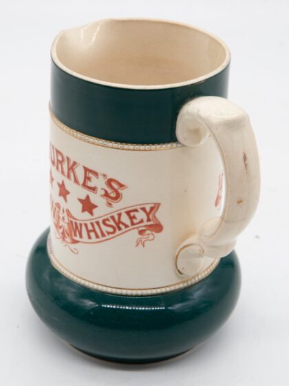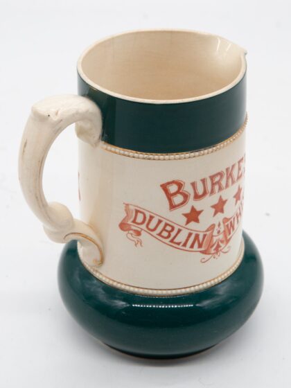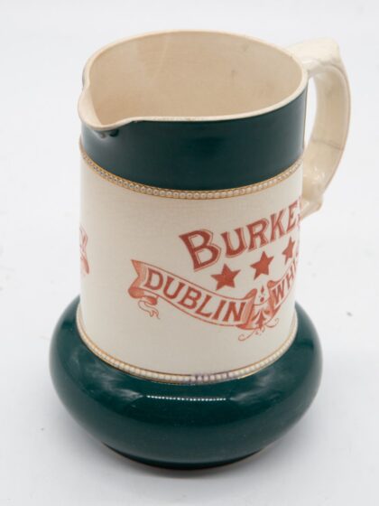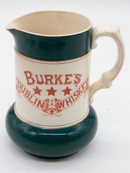 A very rare 19th century ceramic jug for Burke's Dublin Whiskey. This would have been made by S. Fielding & Co of Stoke, a manufacturer of earthenware and majolica from 1879 until 1982. This jug is in excellent condition for it's age.