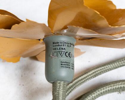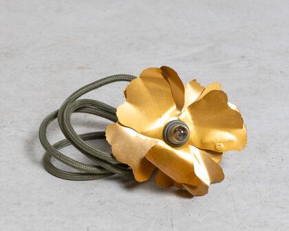 This Helena Christensen for Habitat 2004 Lamp features a unique flower-shaped design, crafted from durable metal with a golden finish. The light is in good condition and includes a long flexible cord with a plug, making it easy to install. Ideal for creating a warm, inviting atmosphere in living spaces or bedrooms. This item has not been tested.