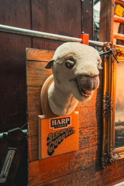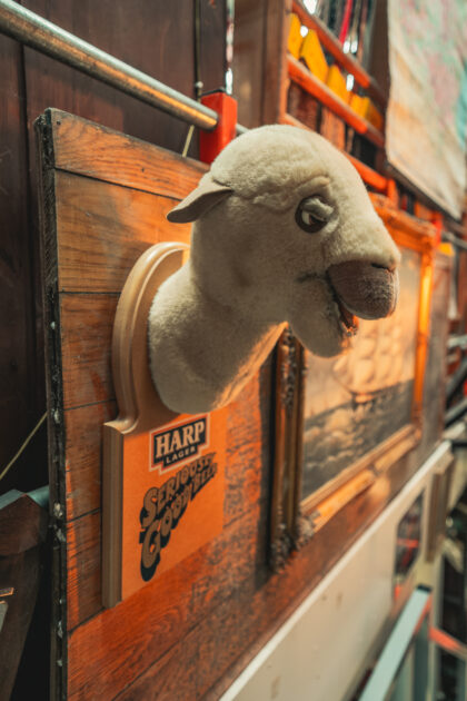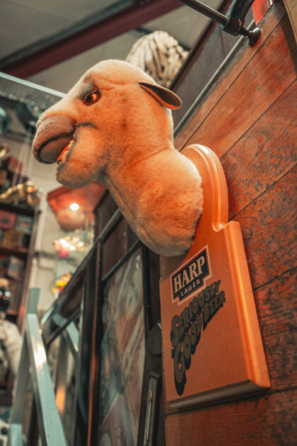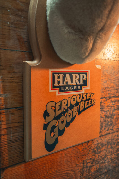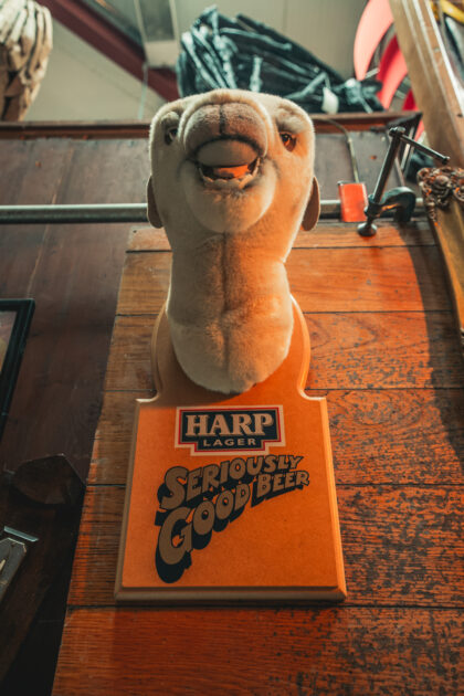 "Hey, Lawrence, give us a pint of Harp and a packet of dates, please." Our last one went really quickly!
