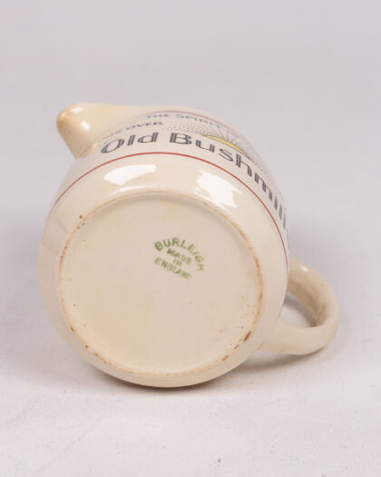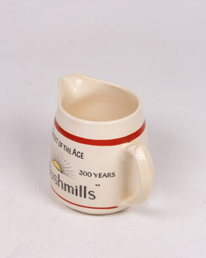 Rare Old Bushmills whiskey jug by Burleigh Ware, made in England. Features the 'Spirit of the Age' logo, indicating 300 years of history. Perfect for collectors of Irish whiskey memorabilia or vintage barware. Ideal for serving water for your whiskey.