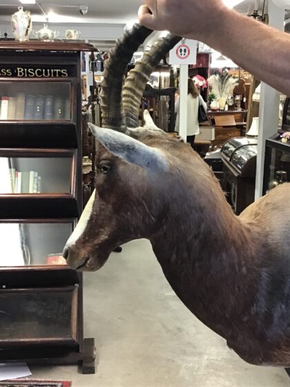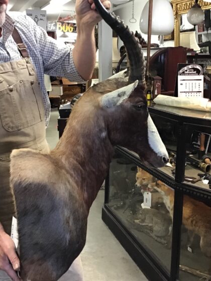 Rare taxidermy African Blesbok head. wall-mountable. About 100cm tall.
