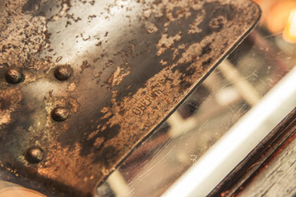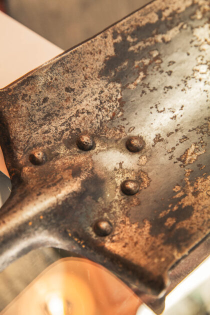 A World War era entrenching tool. Swiss-made and stamped, "Oberwil".