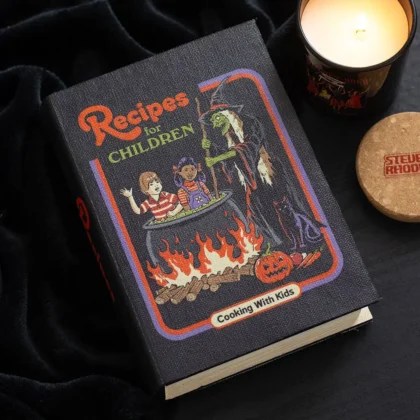 Brand new faux book storage box, featuring the 'Recipes for Children' design with a spooky witch and Halloween theme.