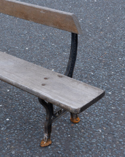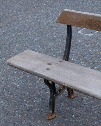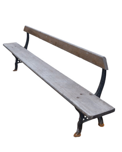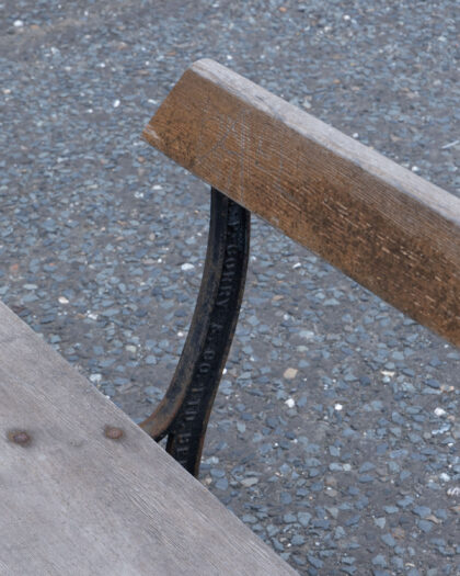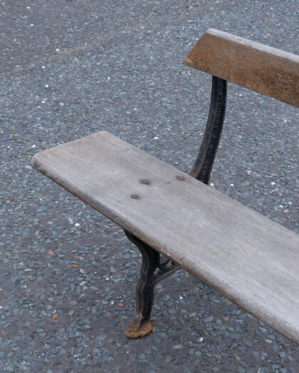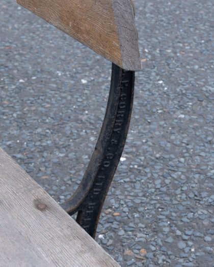 Discover a piece of Belfast's heritage with this authentic vintage garden bench, featuring robust reclaimed wooden planks for the seat and backrest. The sturdy black cast iron legs are proudly embossed with 'A.P. Corry & Co. Ltd, Belfast', adding a significant historical and collectible touch. The wood has gracefully weathered to a charming light grey, showcasing its journey through time, while subtle signs of rust on the feet contribute to its genuine reclaimed character. This bench offers comfortable seating and a touch of rustic elegance, making it an ideal addition to any garden, patio, or outdoor space seeking vintage charm and enduring quality.