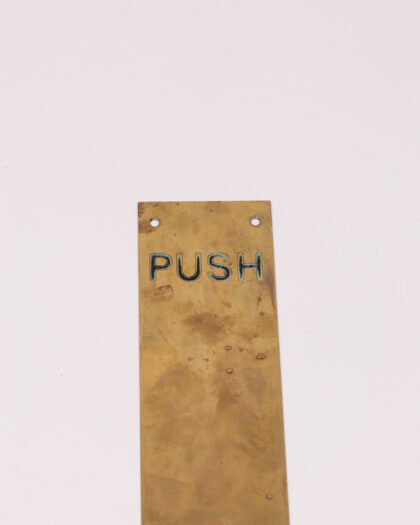 Reclaimed brass 'PUSH' door plate with tarnished detailing and aged look. Great for adding a vintage touch to any door.