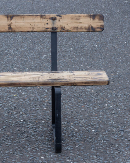 Discover the unique charm of this sturdy bench, crafted from reclaimed wood with a distinctive distressed finish and supported by a robust black metal frame. Its rustic industrial aesthetic makes it a versatile addition to any space, seamlessly blending into a contemporary kitchen, a welcoming entryway, or a vibrant garden area. The durable construction ensures this bench is suitable for both indoor and outdoor use, offering a timeless piece that combines character with practical seating.