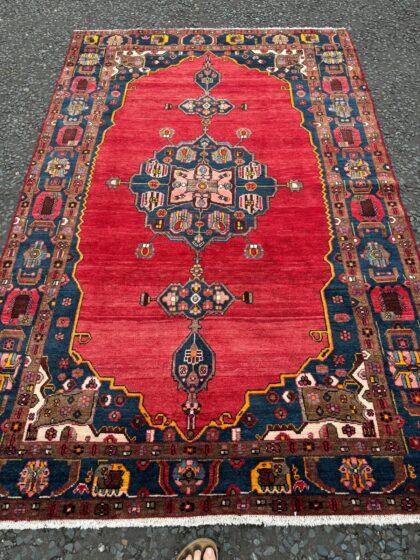 Rich Red, Ground Full Pile Iranian Village Rug. Central Medallion Design.