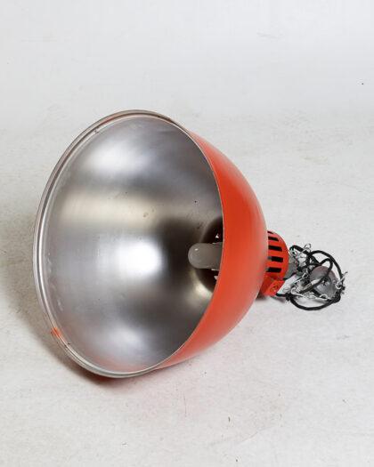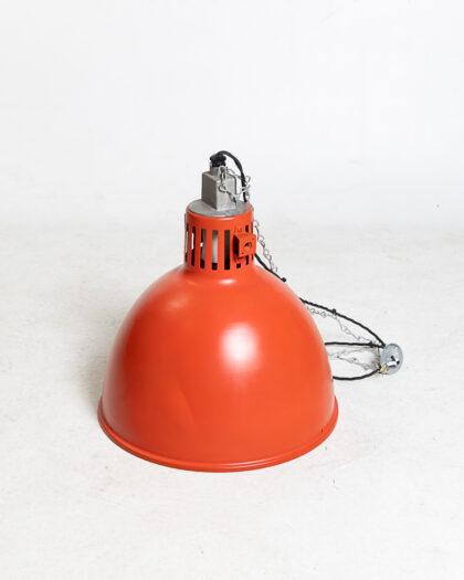 A classic vintage industrial ceiling light in a striking red finish.