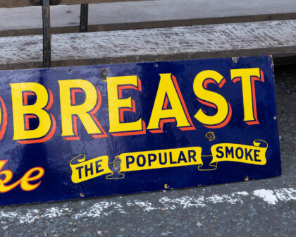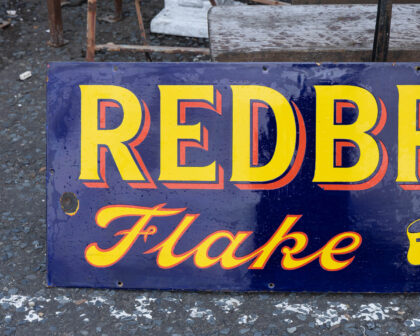 'Redbreast Flake, The Popular Smoke' enamel advertising sign. In good condition, perfect for a collector or retro decor.
