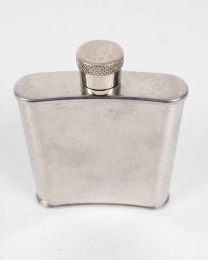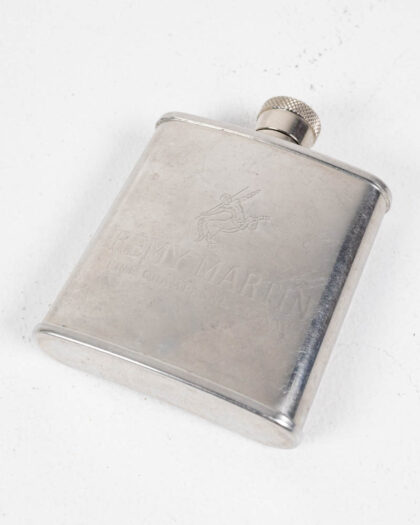 Silver-tone Rémy Martin hip flask. Features an engraved brand logo. In good condition, with some signs of age.