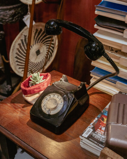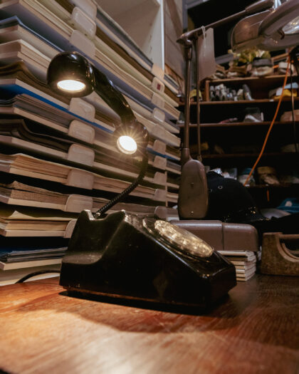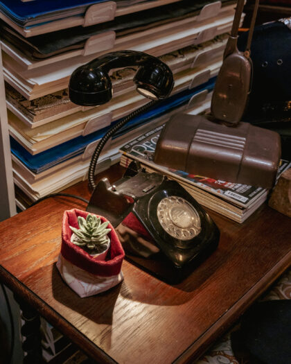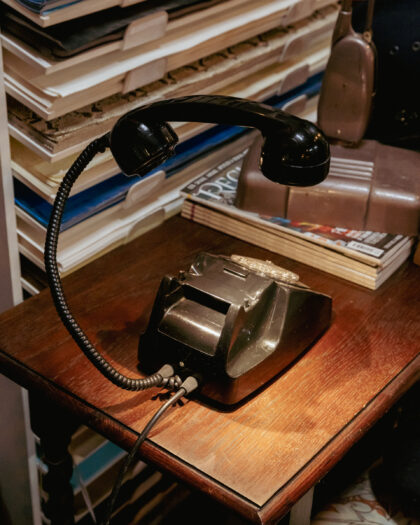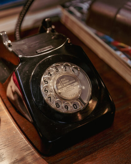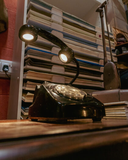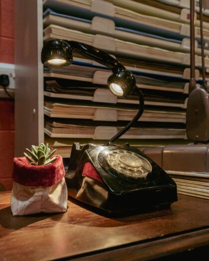 A unique lamp made from an original Bangor NI telephone here in the On The Square workshop. The call end button is the switch for this lamp!