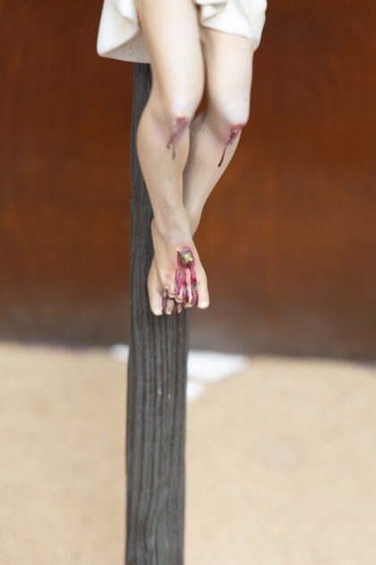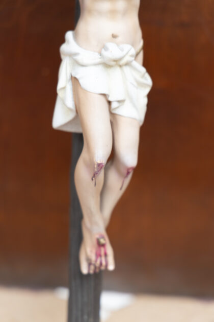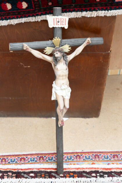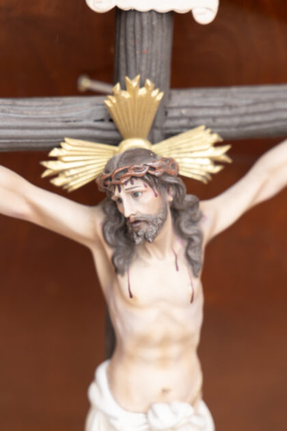 A wall hanging crucifix featuring a figure of Jesus.