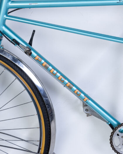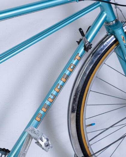 Uncover the charm of classic cycling with this meticulously restored Vintage Peugeot Tandem Bicycle. Originally a cherished piece, this bicycle has undergone a complete professional restoration, featuring brand new hardware, a flawless turquoise paint job, and crisp new graphics, making it essentially a new bike built on a vintage frame. The robust steel frame proudly displays "Peugeot Super Competition" and its "Made in France" decal, affirming its authentic heritage. It boasts two comfortable brown leather seats and a practical rear pannier rack, perfect for leisurely rides or adventurous tours. This unique tandem bicycle is an ideal acquisition for collectors, vintage enthusiasts, or anyone seeking a distinctive and stylish way to share their cycling adventures.