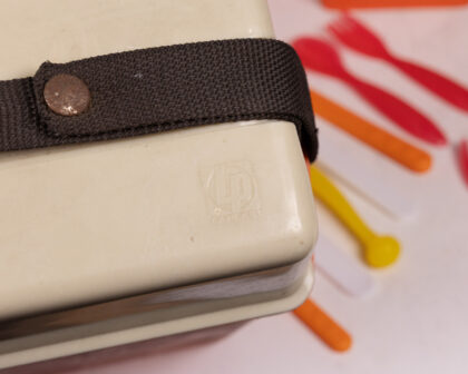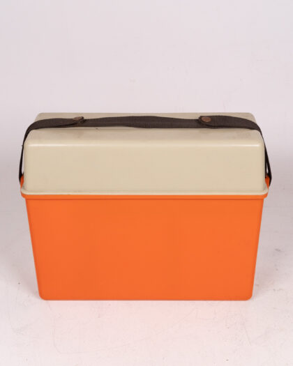 This is a vintage Laplast picnic set, perfect for outdoor dining. The set includes a lidded container that serves as the main storage, two lidded food containers, plates, cups, cutlery, and an egg holder. The set features a colour palette of orange, cream, yellow and white, giving it a retro look. The plastic material is durable and easy to clean, making it ideal for picnics and outdoor events. The set is in good vintage condition, showing some signs of wear consistent with age and use. A charming addition to any vintage collection or a fun way to enjoy outdoor meals.