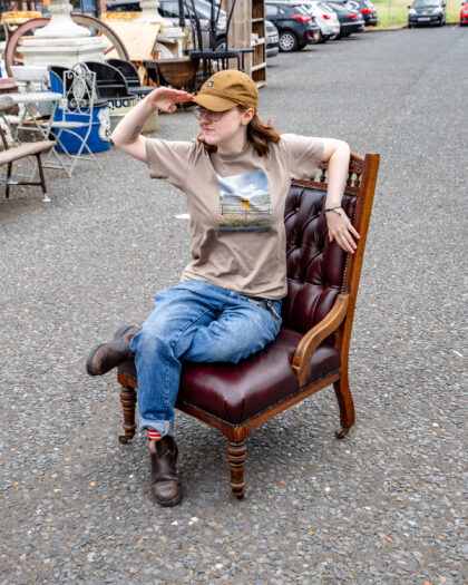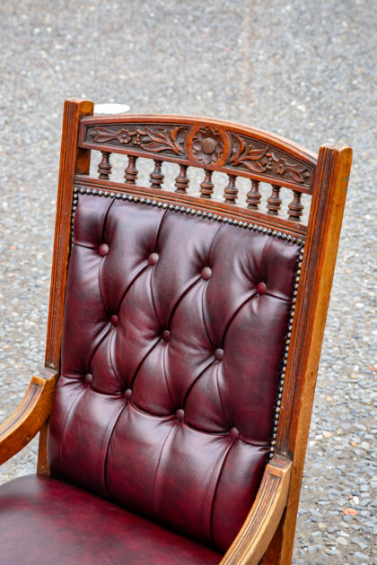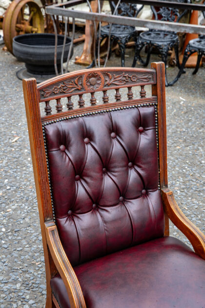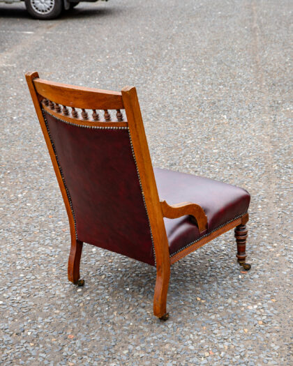 An Edwardian lounge chair reupholstered in genuine leather.