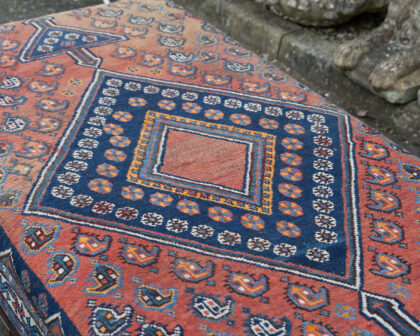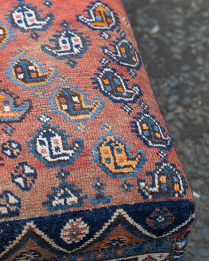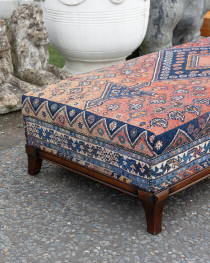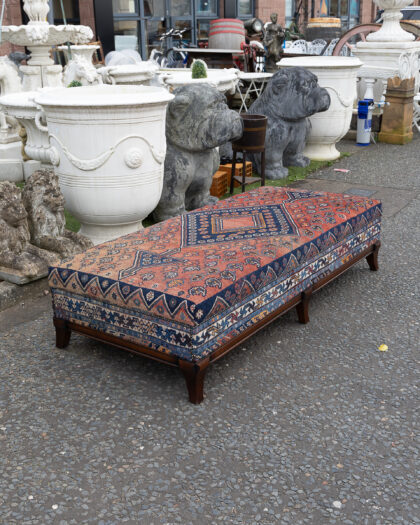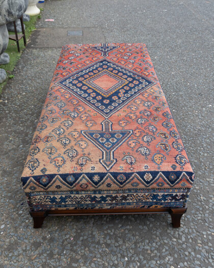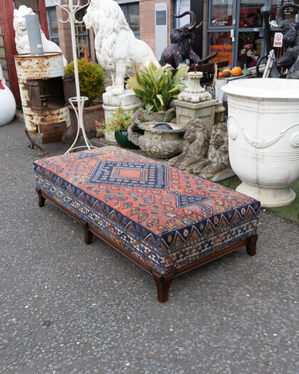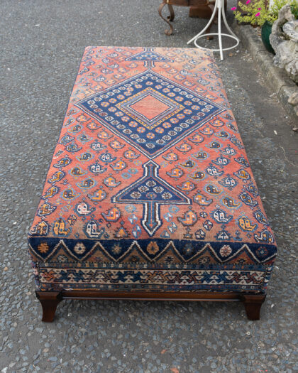 A long ottoman / day bed which we have reupholstered with an antique Persian rug - a truly one of a kind piece!