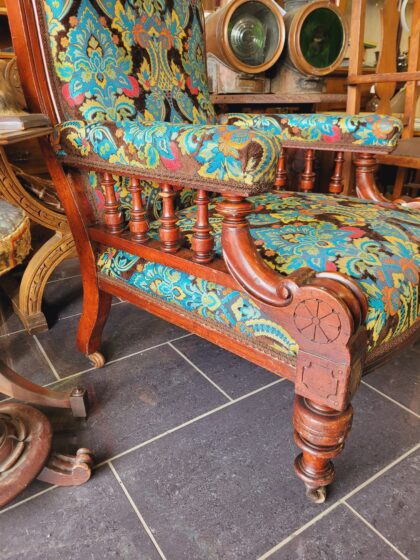Mahogany, newly restored and upholstered, on brass castors.