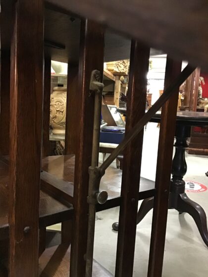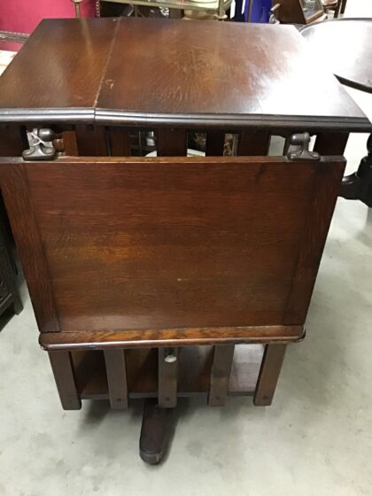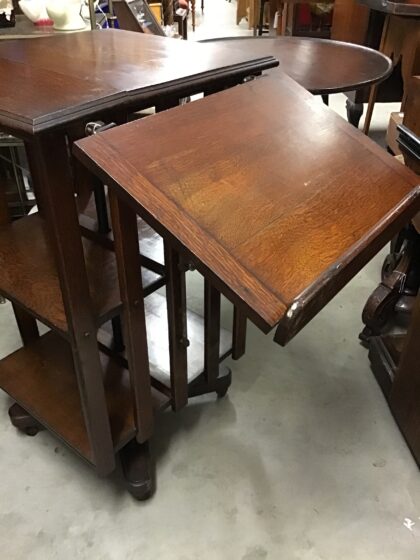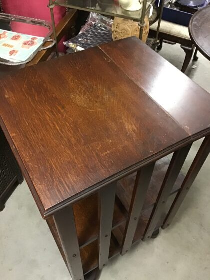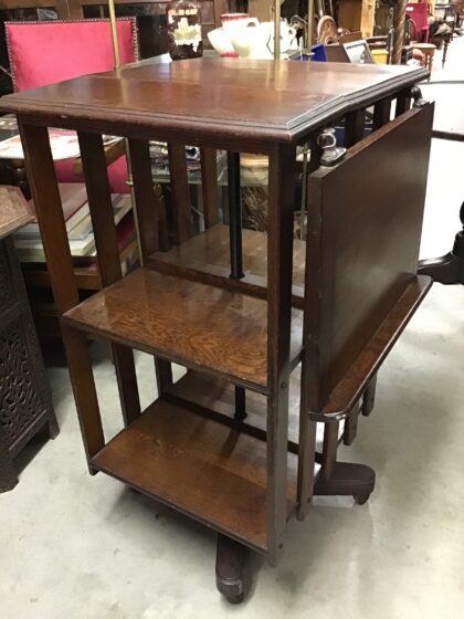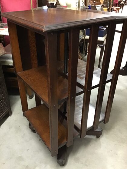 Antique oak revolving library with retractable fully adjustable reading slope.