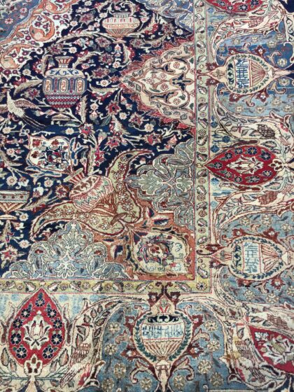 Highly desirable Blue-ground vintage Kashmar rug of good quality, depicting unusual ‘under earth’ design including urns and artefacts.