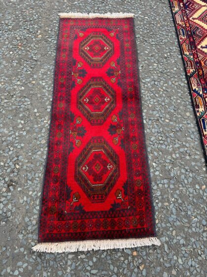Rich Red ground Afghan Tubi Runner with Travil Medallion Design.