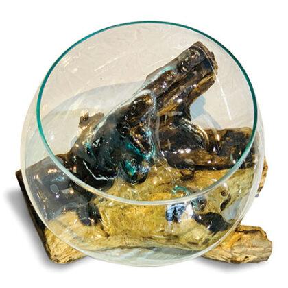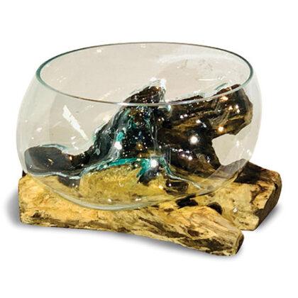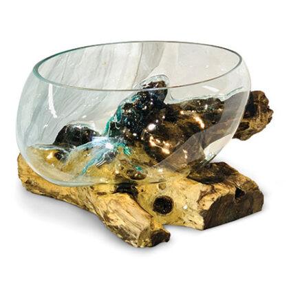 Introduce some functional artwork with our Glass Sculpture range. Each removeable glass bowl is hand-blown and cleverly moulded onto individually selected teak root pieces, as if the glass is melting into the wood, Dali-style!