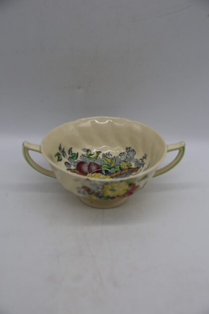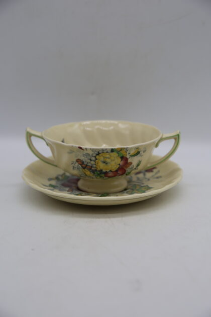 A Royal Doulton ceramic twin-handled soup bowl complete with matching plate.