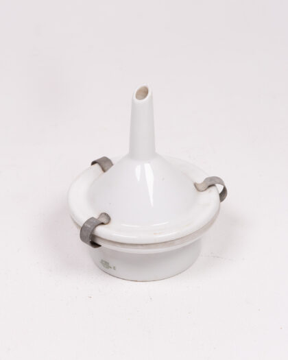 Vintage Royal Worcester ceramic funnel. White ceramic with metal clamp detail. Good vintage condition.