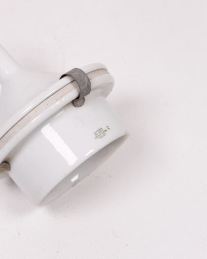 This is a vintage Royal Worcester ceramic funnel. It features a white ceramic body with metal clamps attached to it. Marked underneath. Ideal for use or decorative display. In good vintage condition with some surface wear commensurate with age.