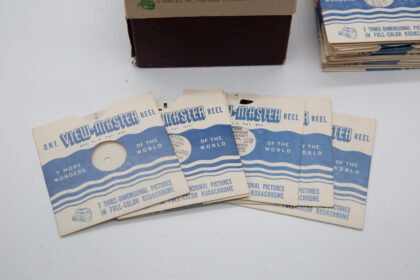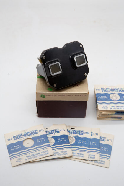 This 1950's View-Master 3D stereoscopic image viewer is in great condition. The £55 price includes three picture reels, not all the reels in the photos. We also have a further 27 picture reels that can be purchased at £5 per reel.