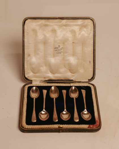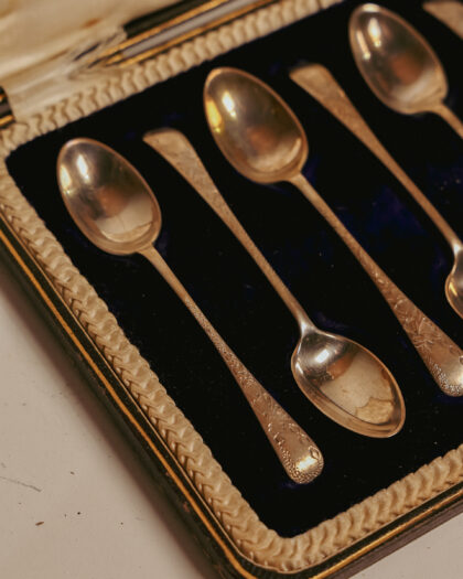 A boxed set of 6 Sterling silver teaspoons with 1908 Sheffield hallmarks. 89g silver.