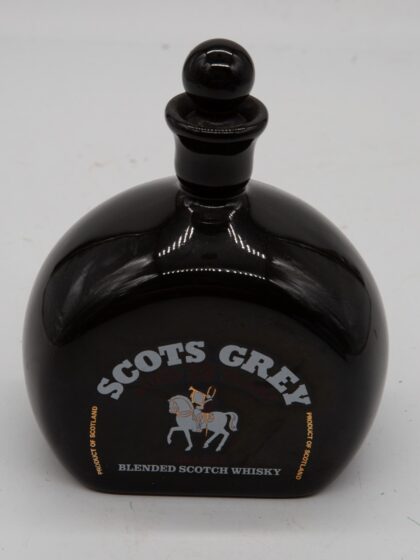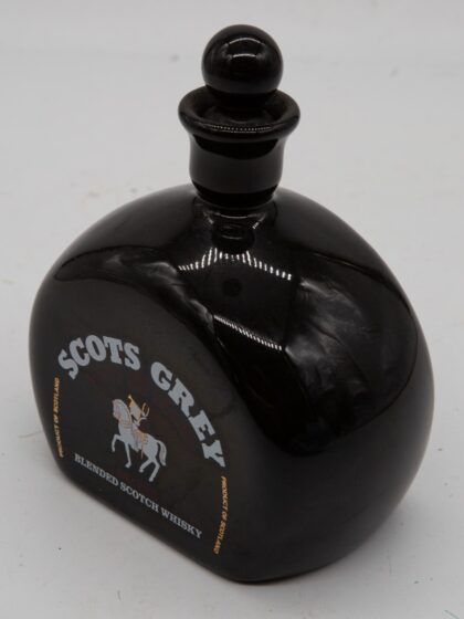 A black ceramic decanter for Scots Grey Blended Scotch Whisky.