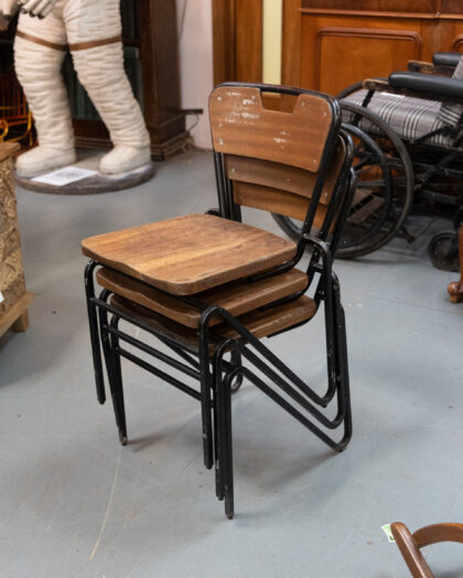 Set of 6 Black Steel Frame Stacking Chairs