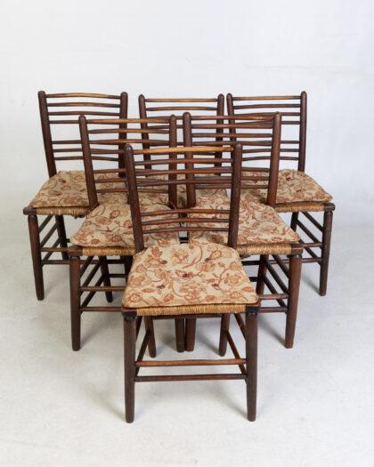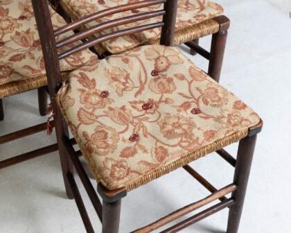 Set of 6 Ladderback Rush Seat Chairs with Floral Covers