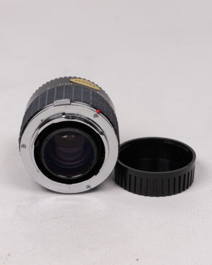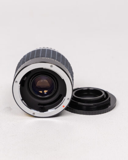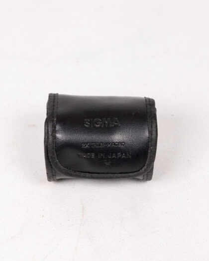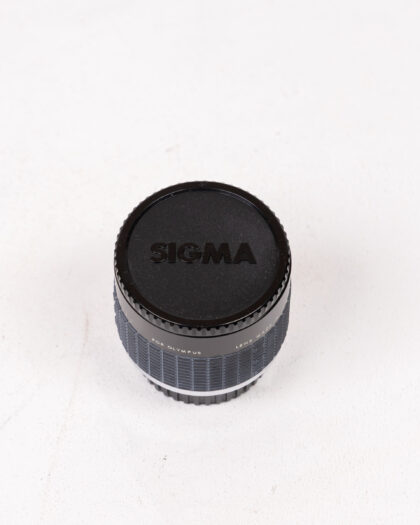 This is a vintage Sigma Tele-Macro lens designed for Olympus cameras. The lens features a black and grey exterior with silver accents. Made in Japan, this lens is in a leather carry case. The lens body shows a 'passed' inspection sticker. This vintage lens is sold as a decorative collectable. Please note: This item has not been tested, we cannot verify if it is working or not and is sold as a prop only.