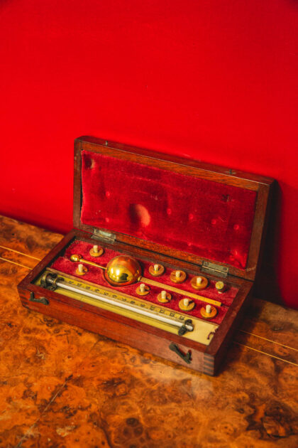 This Sikes hydrometer set would have been made after the 1816 act of Parliament that replaced the Clarkes hydrometer as the standard method of measuring wines & spirits by Excise officers.
