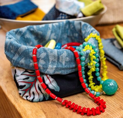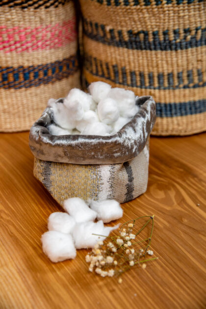 This Silver Velvet Handmade Fabric Pot made in collaboration with Kapdaa–The Offcut Company who take fabric offcuts and samples and turn them into wonderful new products! They work with huge brands in fashion and automotive industry… AND US!