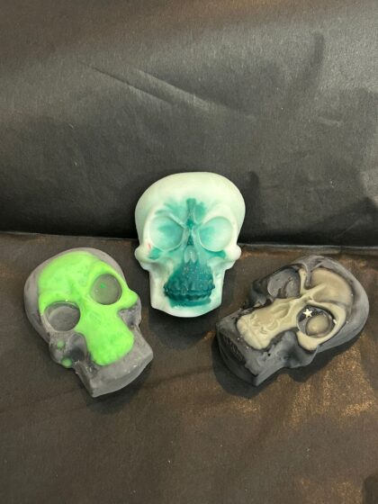 Infuse your home with a spooky vibe using these handmade skull-shaped scented wax melts by Jets Wax Melts.