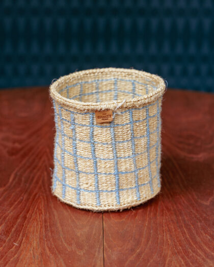 Featuring baby blue checks against soft yellow, our AGIZA baskets are handwoven. Use this small woven basket for toiletries, jewellery and watches, remote controls, mobile devices and cables! These baby blue checked baskets look great on shelves and also make excellent woven planters for all types of houseplants – and we can’t think of a more perfect new home gift…
