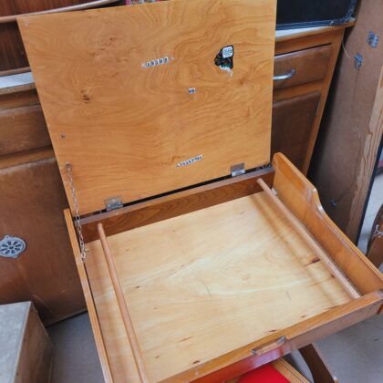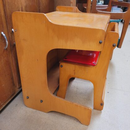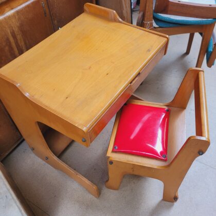 Charming child's desk and chair set, perfect for creative activities. The desk features a lift-top design with storage underneath. Ideal for a playroom or child's bedroom.