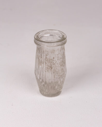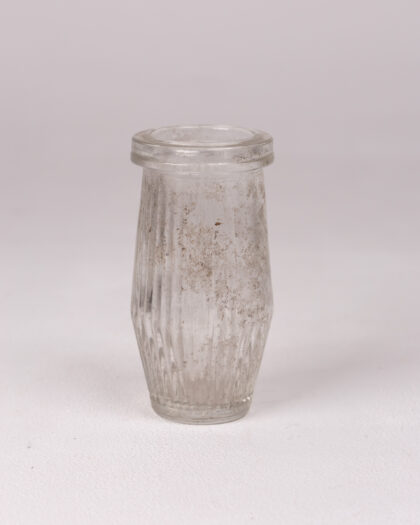Elegant small clear glass ribbed bottle vase, ideal as a bud vase or decorative accent. A simple yet charming piece for any home, perfect for gifting.