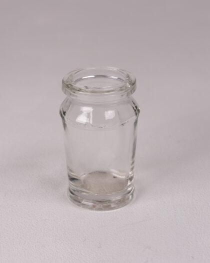 Small clear glass jar, versatile for decor or storage. Perfect for small bouquets, trinkets, or spices. Complements any home decor.