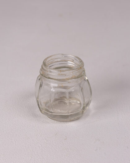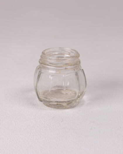 Versatile small clear glass jar with unique indented design. Perfect for organizing small items or as a charming decorative accent.